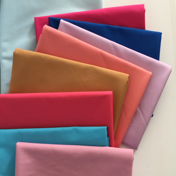 there's also this pile that was inspired by quilter jenna valoe's color palette. i'll admit when i looking at the photos from instagram and pulled these colors, i was a bit dismayed at first. individually, they weren't colors i would usually use. but put all together by jenna, i did like them. so i went ahead and got them. they are totally growing on me as a collection now.
