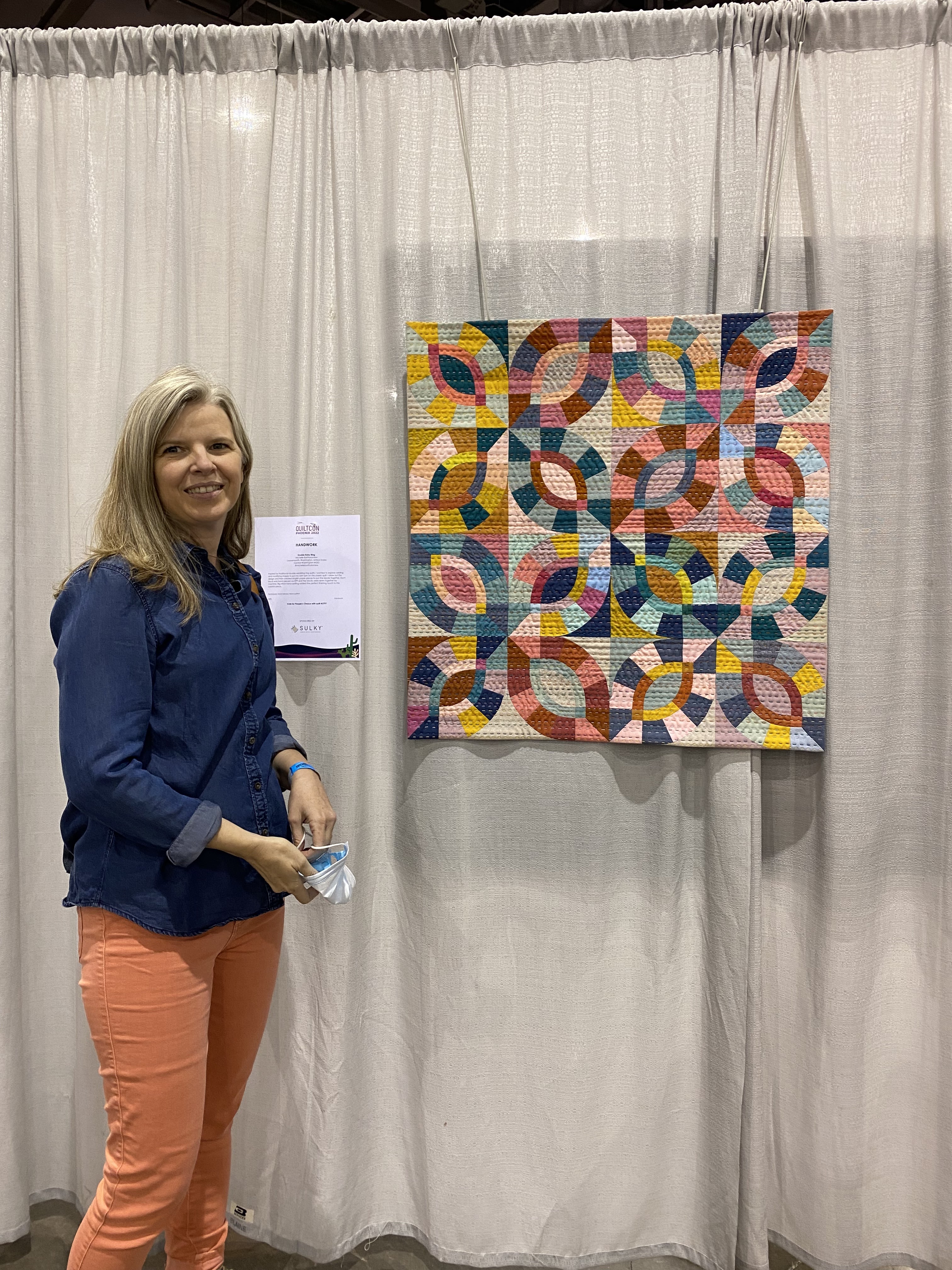 in february, my youngest, d5, and i went to quiltcon for a day to check out quilts and shop at the vendors. initially, she kept saying "blanket" instead of "quilt" while we were talking about the displays and i finally told her no child of a quilter should do that and she was embarrassing me, haha. all tongue-in-cheek, of course. it was a really fun day with my daughter, who was inspired by the children's quilt section to possibly submit her own work in the near future. i really enjoyed seeing the work of quilty internet friends in person, too.